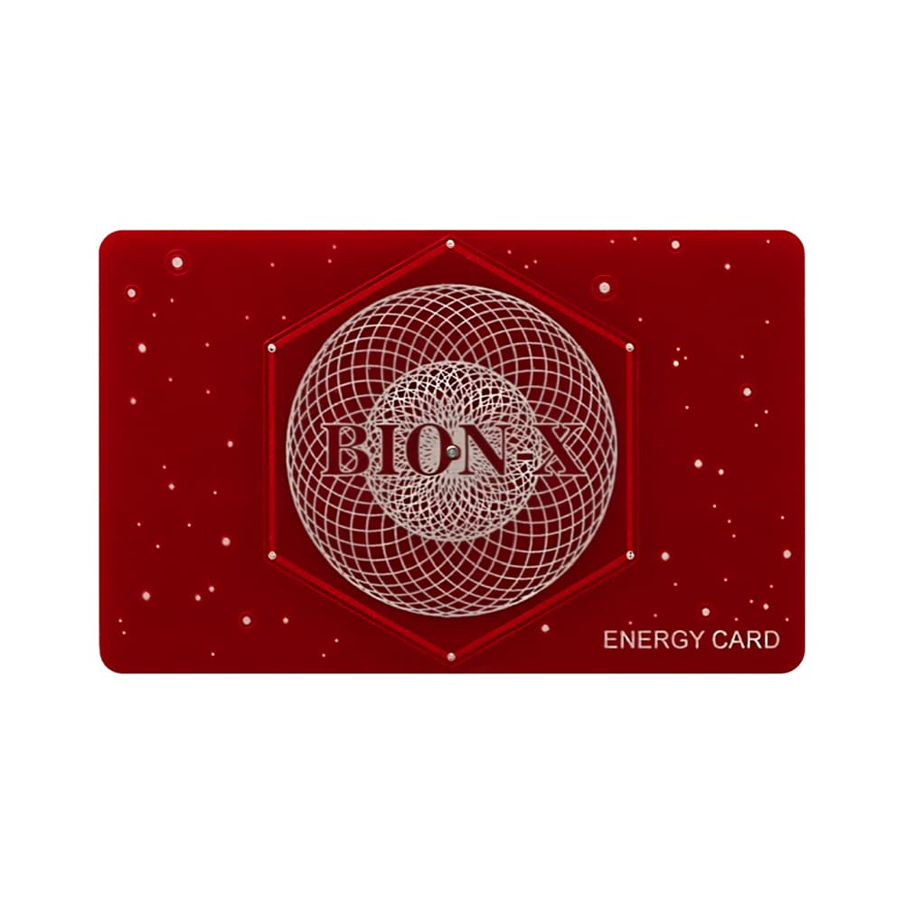 BION-X kırmızı fotonik kristal, birbirini tamamlayan altı BION-X fotonik kristal setine dahildir. Set 6 farklı renkte volumetrik plastik kartlar şeklinde sunulmaktadır. Her bir kartın boyutu 85 x 55 mm’dir. BION-X fotonik kristaller bir güç kaynağı gerektirmez